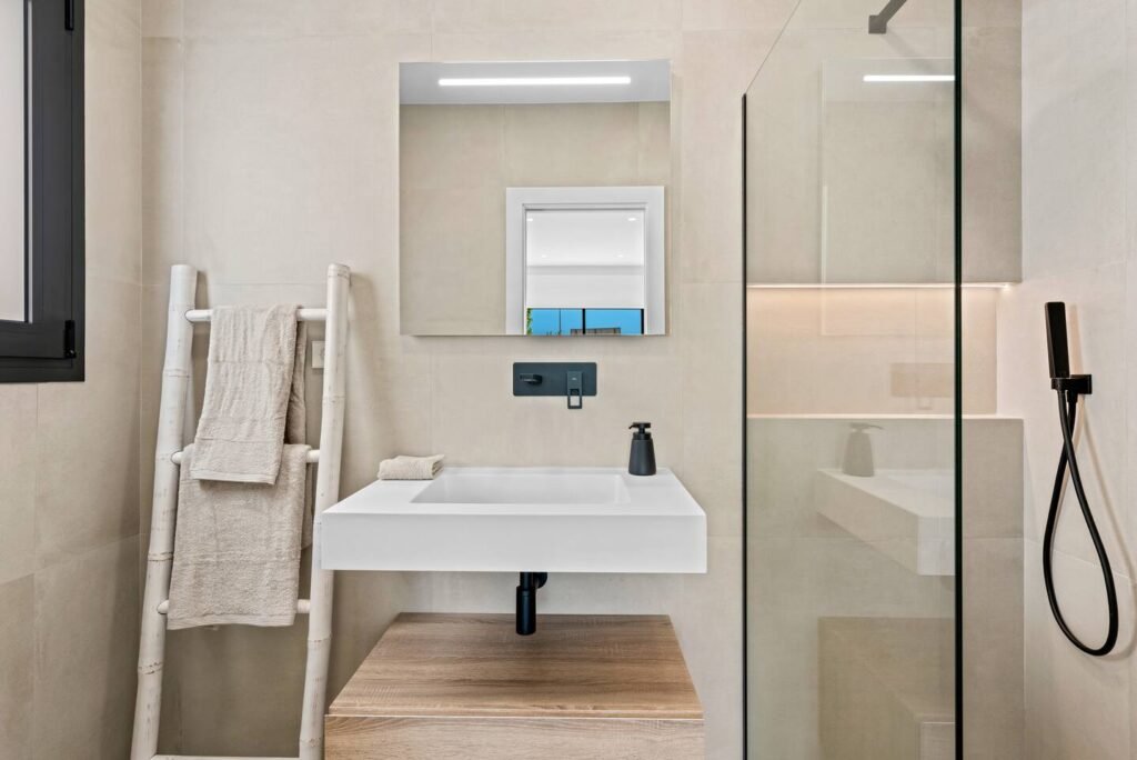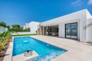 A fantastic three bedroom detached villa with private pool and spacious terraces on ground level. It has a fantastic outside kitchen to enjoy al fresco meals. The décor is modern, and it is equipped to a very high standard. There are numerous bars and restaurants within walking distance just a few minutes away. The main town of Pilar Horadada is only four minutes away with supermarkets, a cinema and sports facilities. Air-conditioning throughout and 3.7km from the beach The space Outside Space has 4 sun loungers, dining table for 6 and an outside sofa. The swimming pool measures 10 by 4 metres and has jacuzzi jets at the shallow end. This is heated to 28 degrees in cooler months. Bedroom 1 has a King Sized bed, ample storage cupboards, one large wall mounted TV and an en suite shower room with underfloor heating. Air conditioned with patio doors leading outside. Bedroom 2 is fully air conditioned, has a queen sized bed, ample storage cupboard and patio doors leading to the pool area. Bedroom 3 has two single beds. One of these pulls out from underneath the one shown in the photos. It has its own air conditioning, ample storage and patio doors leading outside. Towels and bedlinen are of the best quality. Other things to note Swimming pool is 10 metres by 3 metres, Jacuzzi Jets at one end and an endless swimming machine at the other. Heated to 28 degrees in the cooler months. Each room has its own air conditioning and heating. Bathrooms have underfloor heating.